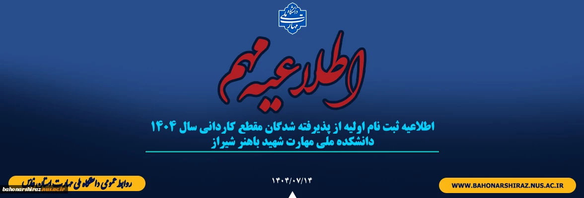اطلاعیه ثبت نام اولیه از پذیرفته شدگان مقطع کاردانی سال 1404 دانشکده ملی مهارت شهید باهنر شیراز 2